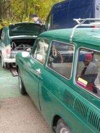 Kaikki ilmoittautuneet pääsivät vielä starttaamaankin ja lähtöön saatiinkin melkoisen kuvattu letka volkkareita eri väreissä ja malleissa. Ensimmäistä kisaansa nautiskelemaan saapunut Oskari Hannu Aki Sparren kanssa taluttivat Mikan rakentaman todella upean ruiskukoneisen kolmostyypin letkan ensimmäisenä lähtöön ja kisa oli käynnissä.
